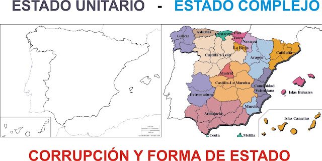 No voy a entrar en este artículo sobre las ventajas e inconvenientes de un Estado unitario frente a otro complejo, pero es obvio que, en lo que concierne a la corrupción, las posibilidades de acción del corrupto son mayores en un Estado complejo que en uno unitario, especialmente por la “desconexión” de información entre los distintos niveles de gobierno y las diferentes regulaciones de sus organizaciones y funcionamientos que existe en las Comunidades autónomas del Estado complejo, aumentando las posibilidades.